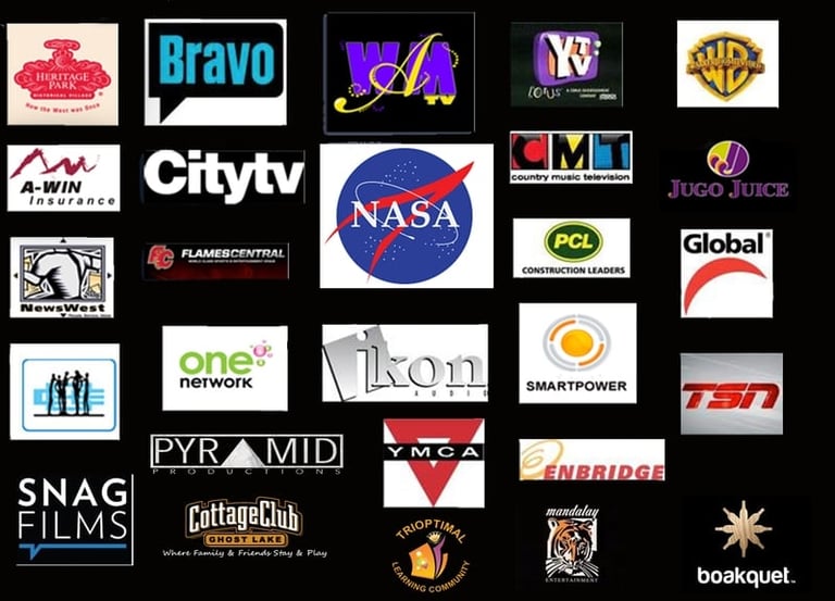 We pride ourselves on a diverse and impressive client roster that speaks volumes about our expertise and versatility. Our esteemed clientele includes renowned organizations such as Heritage Park, Bravo TV, City TV, WAM Network, YTV, Warner Bros, NASA, Global TV, TSN, CMT, Calgary Flames, Snag Films, Mandalay Pictures, and many more. From iconic entertainment networks to cutting-edge technology companies, we have had the privilege of collaborating with industry leaders across various sectors. Our successful partnerships underscore our commitment to delivering high-quality and tailored solutions that exceed the expectations of our clients.